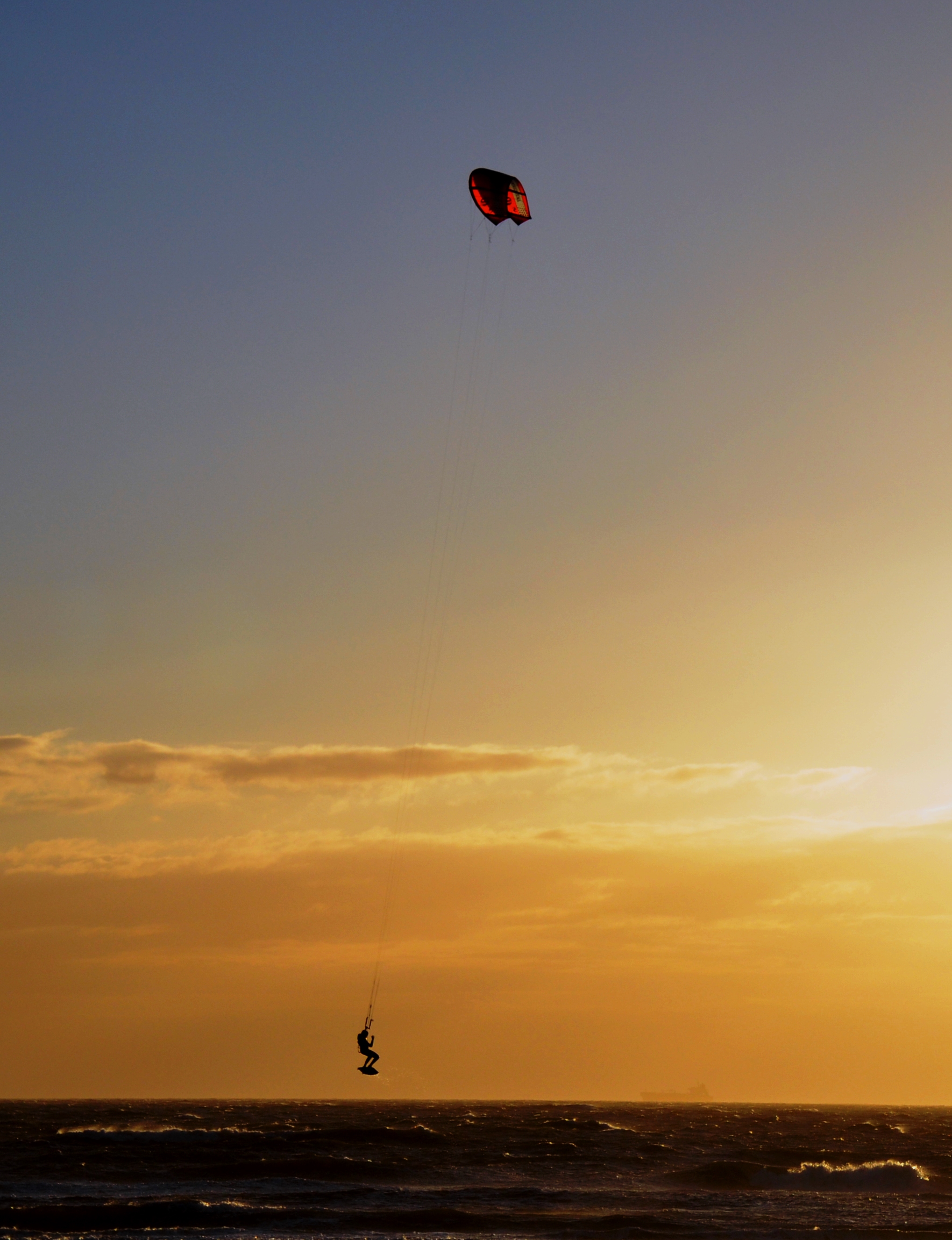 Kitesurfen bij zonsondergang