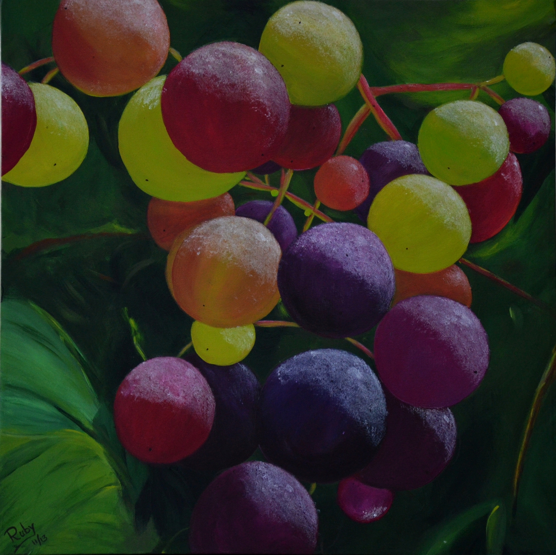 Foto genomen van mijn druiven in de tuin. Prachtig gewoon al die kleurschakeringen. Dat vraagt om een geschilderde uitvergroting.
